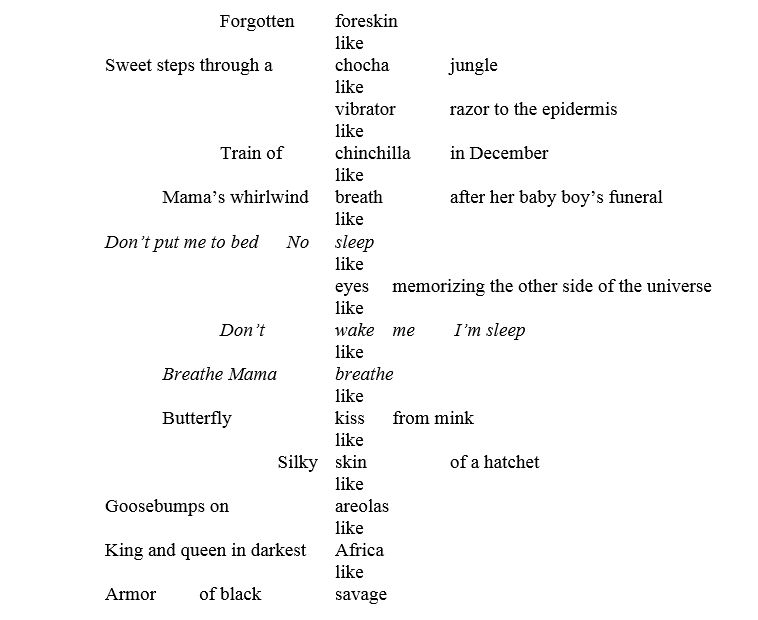 Len Lawson is the author of the upcoming chapbook Before the Night Wakes You (Finishing Line Press) and co-editor of the upcoming Poets Respond to Race anthology (Muddy Ford Press). He has been accepted to the Ph.D. in English Literature and Criticism program at Indiana University of Pennsylvania. Len is a 2015 Pushcart Prize & Best of the Net nominee and a 2016 Callaloo Fellow. His poetry appears or is forthcoming in Callaloo, Public Pool, [PANK], Mississippi Review, Winter Tangerine Review, and elsewhere. He is a Poetry Reader & Book Reviewer for Up the Staircase Quarterly. Selected by Kamden Hilliard.